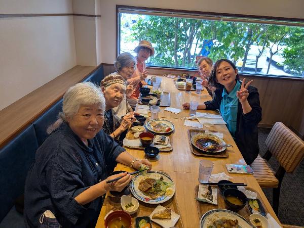 2025-06-13 外食ツアー 6月、にこスパでは外食ツアーを行いました(^^)/今回は初めて行くお店!ボリュームがあり、味もおいしい定食に皆様大満足♡「おいしい~!」とペロリと完食されていました(^^♪7月は夏祭りを予定しております☆彡暑い日が続きますのでしっかり水分と休息をとって熱中症を予防しましょう(+o+)