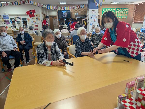 2025-07-24 夏祭り 毎日暑い日が続いています(+o+)デイサービスにこスパでは、先日夏祭りを行いました☆彡射的や風船投げ、型抜きなど皆様楽しんで参加しておられました!おやつは手作りのあんみつでした(^^♪9月には敬老会を行う予定です☆彡